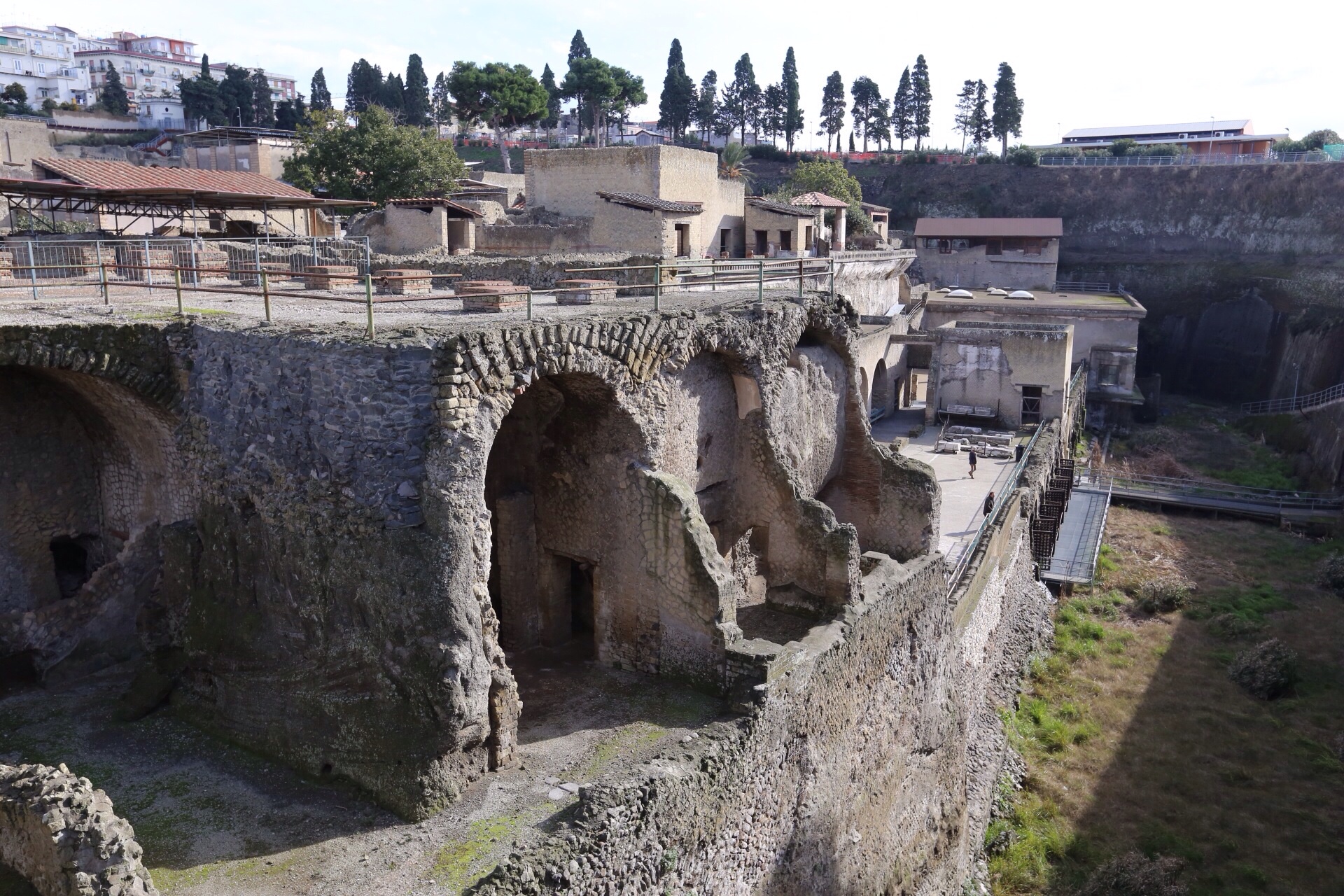 First, Herculaneum – easily reached by the Circumvesuviana train line from Naples, you get off at Erculano Scavi station and walk for ten minutes or so downhill, through the modern town, to the site. In fact, you can see the ruins from the raised walkway without even purchasing a ticket. The site is compact but I would still recommend hiring a guide in order to get the most out of your visit. We paid 40 euro for two hours with Carlos, an amazing man of 73 who had so many stories…he has guided for Meryl Streep and Jean Paul Getty junior…needless to say he was worth every penny. Guides are hired at the ticket office. There are also toilets here and a left luggage facility (free).