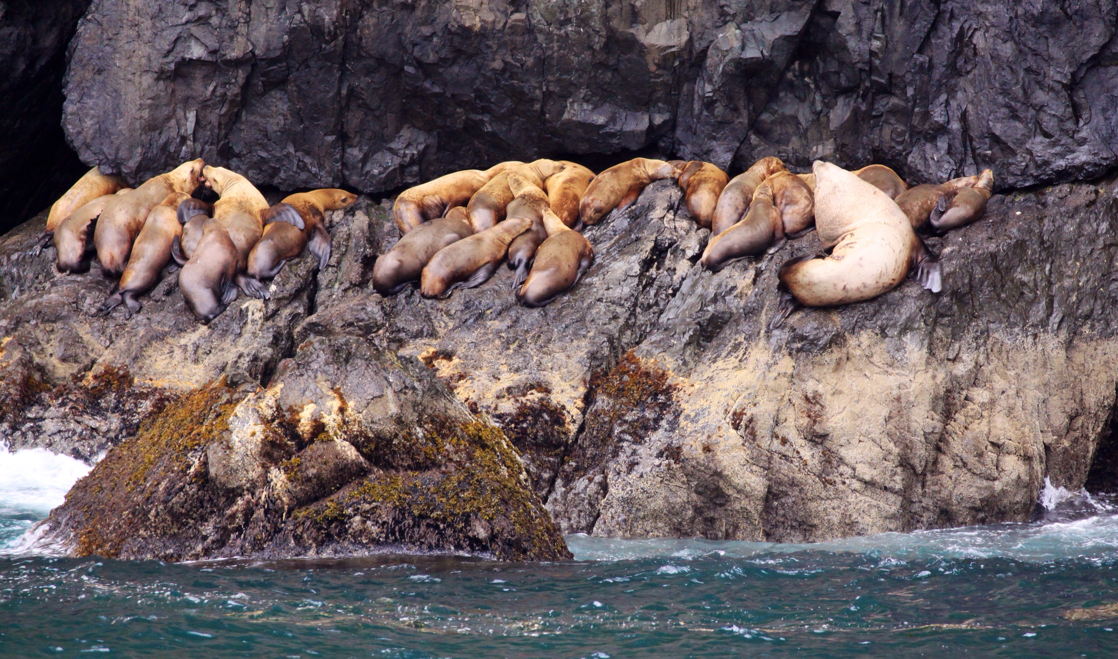 We sleep in a bit this morning, surprising as the hotel really doesn’t have any kind of heavy curtain and the room remained light – must be getting used to perpetual daylight. Anyway, at just before ten, we take a lap around town and head towards the small boat harbour. Parking is beside the Chevron servo, a place where we will later get ice and avert a bathroom emergency, and pay the $20 to cover two days parking. Breakfast is next, with the voucher place serving up surprisingly good fare, the hash browns are actually chopped and roasted small potatoes, yum. Whilst in the cafe, I hear a familiar accent telling his friend to ‘chuck it in the bin’, he sees me chuckling and we strike up a conversation. They are a group of entertainers – dancers mainly – from the big cruise ship that’s in port. Two Aussies and an American, they are travelling the world this way. After Alaska they are off to Asia for a couple of months. At 10:20 I dash over to the check in desk of Major Marine tours and agree to all the conditions. It’s a bit rough out there today,says the girl in a rehearsed but very friendly way. We’re good, sailors, I say in a much more convincing tone than I’m feeling.