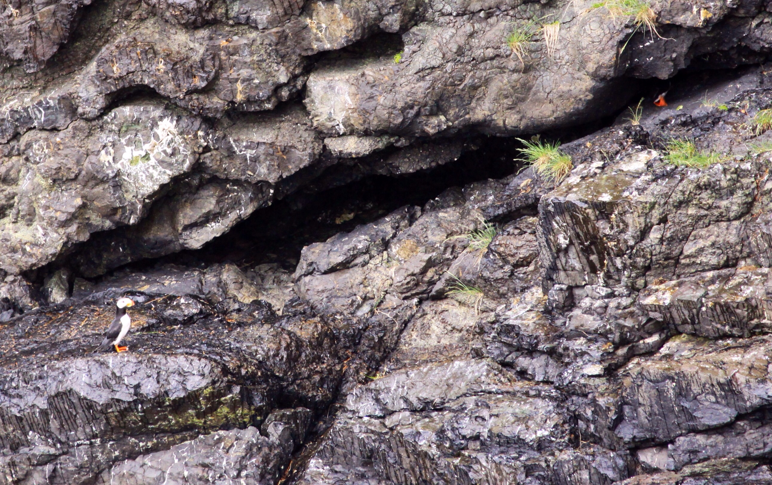 The sea is flat at first, then as we leave Resurrection Bay, the swell picks up. We stop many times for photo ops and the animals oblige – first humpbacks, not breaching but surfacing enough for a thrill, then a bird rookery. We get in close and see puffins (much tinier than expected), seagulls, sea lions and even an otter. The. The orcas arrive, followed by more humpbacks…it’s a feast and we all click away, phones out in most cases, videos (that I wonder who will ever watch) and even the odd iPad. The swell picks up a bit more and the joy of the animals is forgotten as person after person takes their place on level two. I haven’t been seasick in years but took the defensive stance of positioning myself in the fresh air, just in case but boy, after the person beside me heaves all over herself, I decide it’s time to move. The young crew run about with new sick bags, paper towels and wash cloths and do a remarkable job of looking after everyone. I tell one of them that she could do anything after this. We round a corner into one of the fjords and like magic, the sea is flat again. Time for lunch. A salmon and prime rib buffet that is pretty good for its kind. Many passengers tuck in and I silently hope the seas remain flat for the ride back.