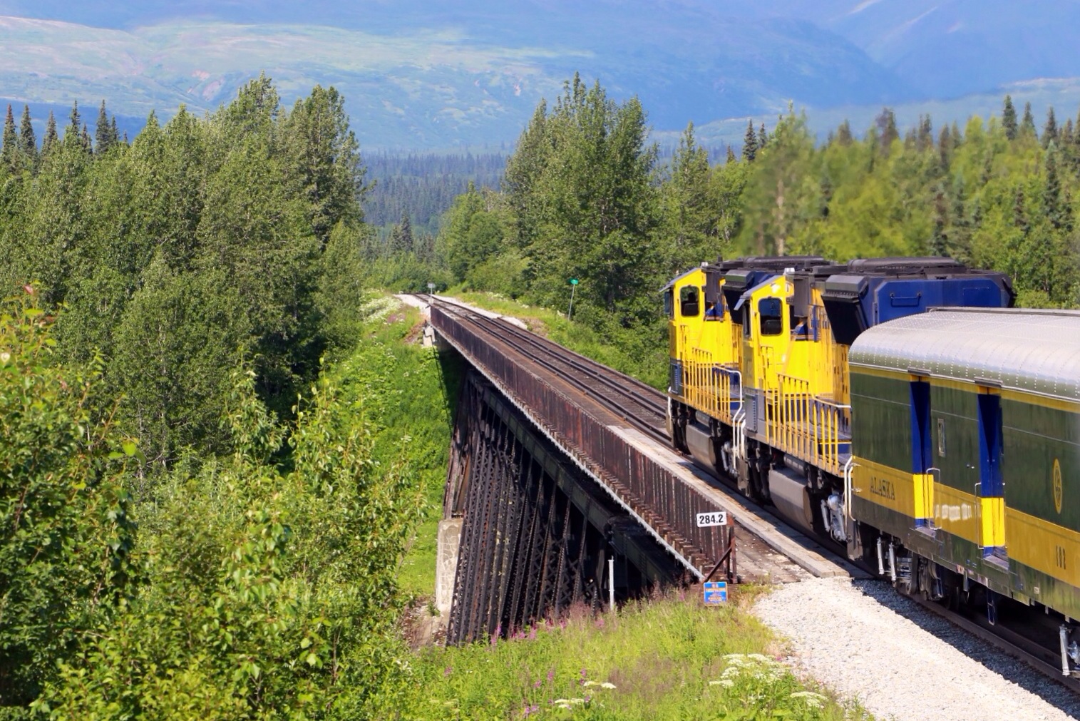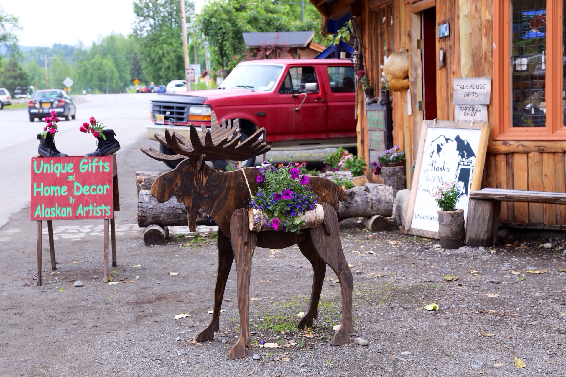 Our destination today is Talkeetna, a small town about 115 miles north of Anchorage. Originally a miner’s camp, some of the old log cabins have been refurbished and now a quirky collection of gift shops, cafés, brew houses, galleries and tour providers provide an interesting place to visit. Busy with tourists in the summer, Talkeetna is very quiet in the winter. We have dropped off the hire car, so our transport is the Denali Star, operated by the Alaska Railroad. It’s only a three hour ride so I opted to just book adventure class seats, no food or drink included and just basic seating but big windows anyway. The Copper Whale Inn provided a bagged breakfast (we checked out at 6:45am – too early for their spread) and we eat that after checking the bags and before boarding the train.