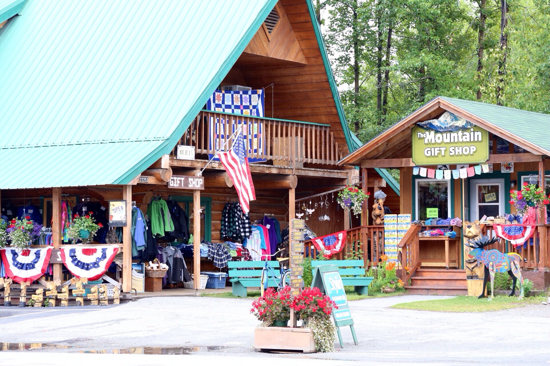 First order of business is to find the Latitude 62 restaurant; this is where we are to pick up the key to our cabin. I have a map, but it takes a minute to orient ourselves. Trudging along with all our bags and rain dripping in,our faces, I’m glad to see the restaurant at the end of the railroad carpark. It’s friendly and rustic inside (think antlers, rifles and mountain pictures on the walls and a baseball game on the televisions above the bar) so we decide to have lunch. Enquiring about a lift, a local lady volunteers, saying, if they don’t mind dog hair, I’ll take ’em. We find out later Nancy is the manager of the restaurant and our cabin. We pile into her big, black suburban and meet Sammy, a wiry rescue terrier with one eye. He is very friendly and I catch up on some dog cuddles as we drive through the Main Street of town, it’s not long though until he resumes his customary position on Nancy’s lap.