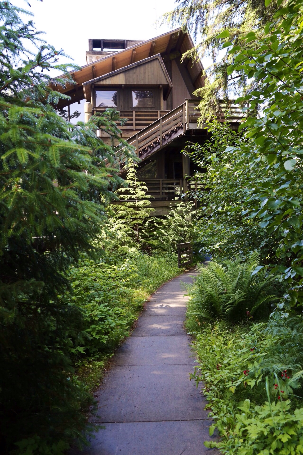 I’m sitting at the departure gate when Gordon goes skidding past, shoes and belt in hand, sprinting for the flight he is sure he has missed. I call out and he relaxes visibly. The flight has been delayed; he’s made it with plenty of time. After all the drama we finally board the plane – the wait was for 14 people coming in from Anchorage, as there are only 20 or so people on the plane altogether I see why they waited – it’s also a 24 hour wait if they miss the flight. You’d think we were on a long journey to somewhere remote after all the fuss, but exactly 15 minutes after take off, we are touching down in Gustavus, just 60ish miles to the north of Juneau. The Glacier Bay Lodge bus is there waiting to collect us, along with most of the people from the flight. A couple are headed to B&Bs but that’s about it for accommodation. From the airport it’s a twenty minute bus ride, through the town of Gustavus, population 300, one shop, one cafe, a school, garage (with original fuel pumps) and fire station and that’s about it. The forest closes in and we enter the National Park. The Lodge staff are clearly accustomed to checking in a bus load of people in bulk, a member of staff boards, gives us a run down and then hands us our room keys as we disembark. It’s easy and quick – a good first impression.