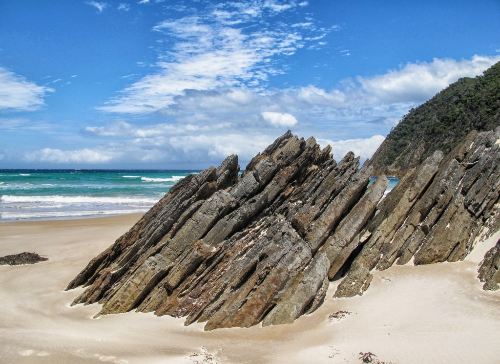 From Coal Bluff, we descend to the beach next to Lion Rock. So many potentially awesome photographs here. We see the track to the campsite leading back up behind the dunes but continue along the beach. The cliffs are increasing in height and before long we reach the stone steps that lead up to the viewpoint above the beach. Many people walk out to here from Cockle Creek, it’s easy to see why. The views are superb. We meet a guy, who is taking pics with his iPad, he tells us that the track is actually closed and that he has slipped past the ropes. We now realise why we haven’t seen anyone for the past seven days!